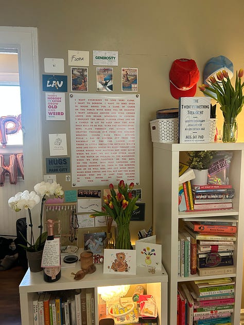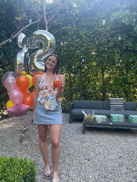 Best of all, this newfound head- and calendar-space made room for me to soak in my 22nd birthday last Wednesday. It was a day filled to the brim with joy. Solo yoga in Silverlake. My finance class got out early!!! For once! My roommates and I laid out back in the sunshine, listening to country music and reading. I set an adorable (if I say so myself) dinner table and my roommates and I dined over Jon & Vinny’s takeout and Aperol Spritzes. What more could a girl ask for?