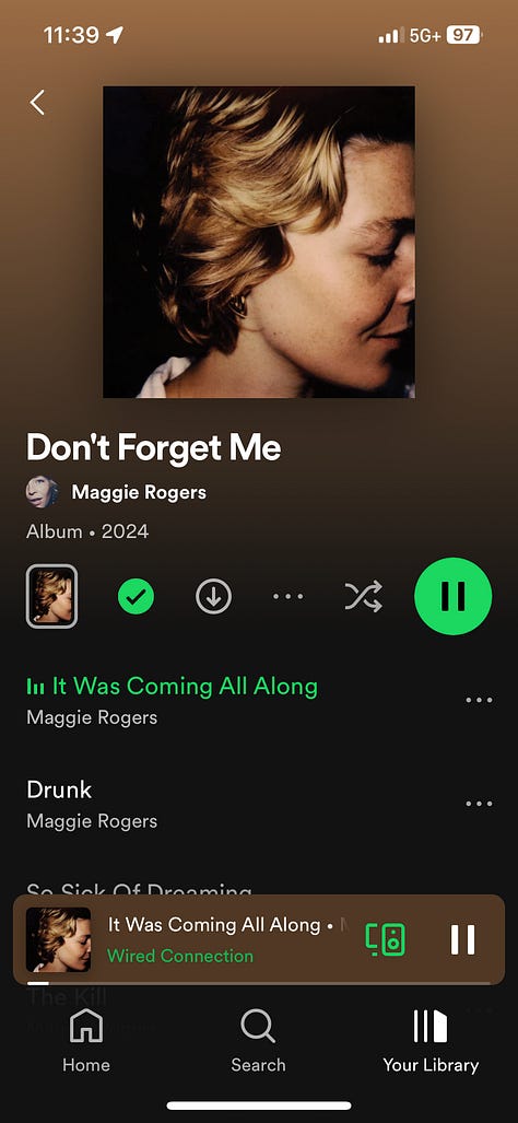 Maggie Rogers’s new album on loop. Lots of singing in the car.